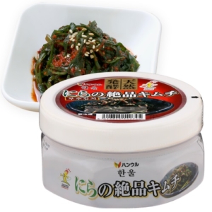キュウリやダイコンのキムチ和えなど作る時でも、市販のキムチの素が甘いものばっかりなので、にらの絶品キムチで味付けしています。
