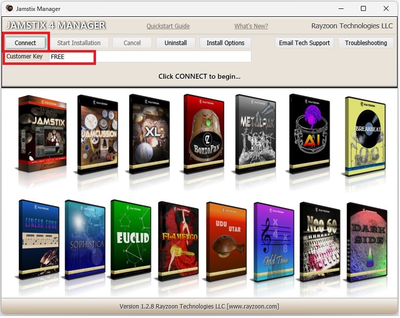 起動すると、Freeバージョンをダウンロードしているので、『Custumer Key』の欄が『FREE』の表示になっています。