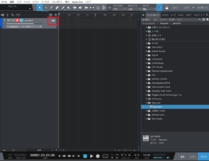 新規でトラックを作った状態では、まだドラムセットが選択されていないので、ドラムが無い状態で表示されています。