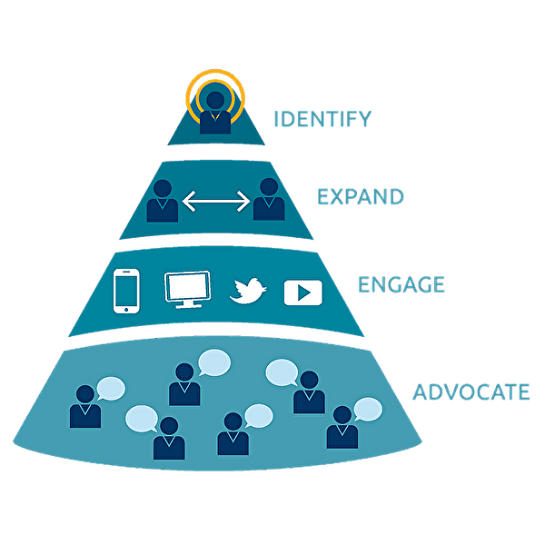 インフルエンスファネルを図にすると、パーチェスファネルとは逆のピラミッド型になります。