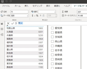 テーブルに「都道府県名」が表示されるように設定し、新しい列を追加します。