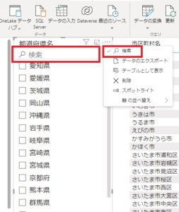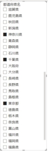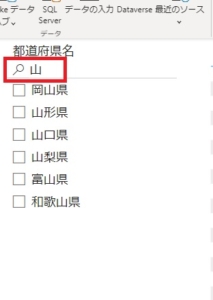例えば検索ボックスに「山」と入力すれば都道府県名に「山」が入った項目が全て表示されます。