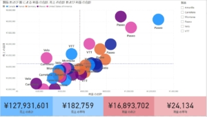 全体で表示すると、売上や利益の平均線と平均金額は少し紛らわしいかもしれませんが、これが製品を個別に表示すると理解や把握がしやすくなります。