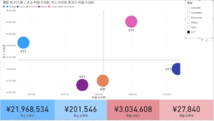 となり、『VTT』が1つ当たり平均いくらで売れて、1つ当たりの平均いくらの利益が出ている、というのが直感的に把握できるわけです。