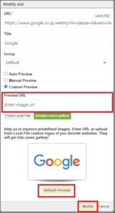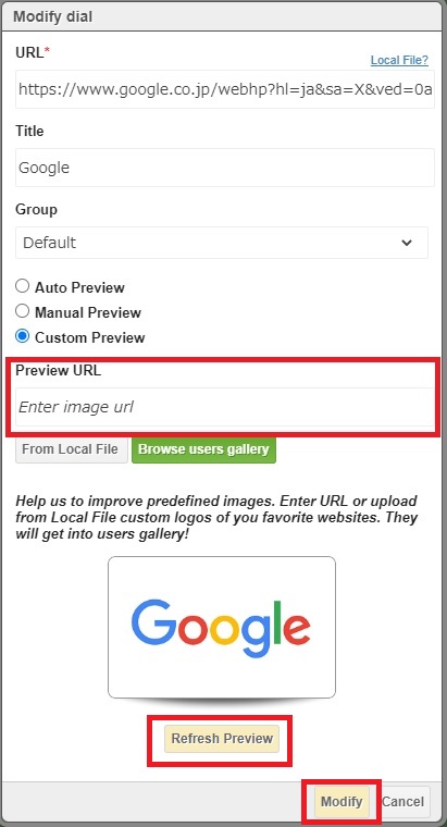 下の「Refresh Preview」ボタンで確認が出来たら、「Modify」ボタンをクリックして設定完了です。