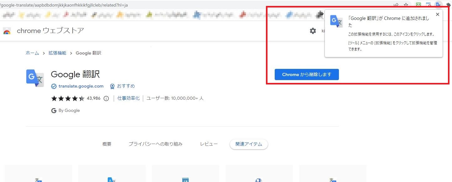 そうすると、確認画面が表示されるので、「拡張機能を追加」ボタンをクリックします。