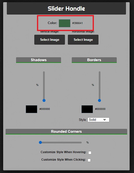 次に「Slider Handle」という設定欄があるので、スクロールバーの色を変更します。