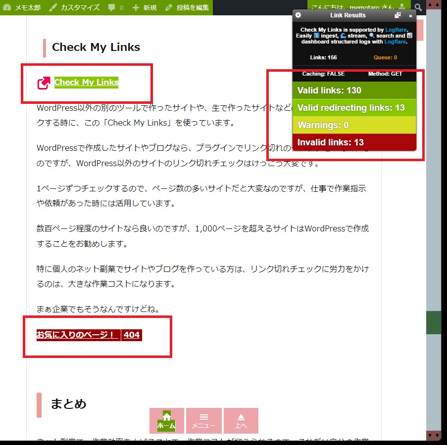 WordPress以外の別のツールで作ったサイトや、生で作ったサイトなどのリンク切れをチェックする時に、この「Check My Links」を使っています。