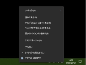 インストールが完了し、タスクバーを右クリックすると、Windows10の時と同じメニューが出るようになります。