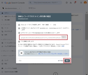 TXTレコードをコピーした画面の『確認』ボタンをクリックします。