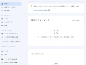 入力が完了したら保存して、バリュードメインの管理画面からサーチコンソールへの画面に移ります。