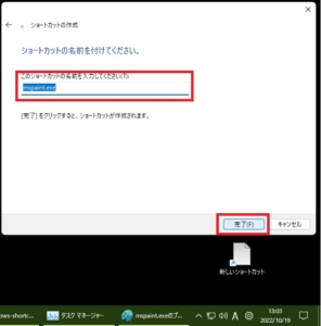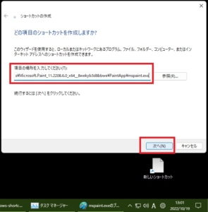 Windows11でショートカット作成手順(例:MSペイント)