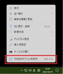 MSペイントのファイルアドレスが作成できたら、デスクトップのどこでも良いので右クリックしてメニューを出し、『その他のオプション表示』をクリックします。